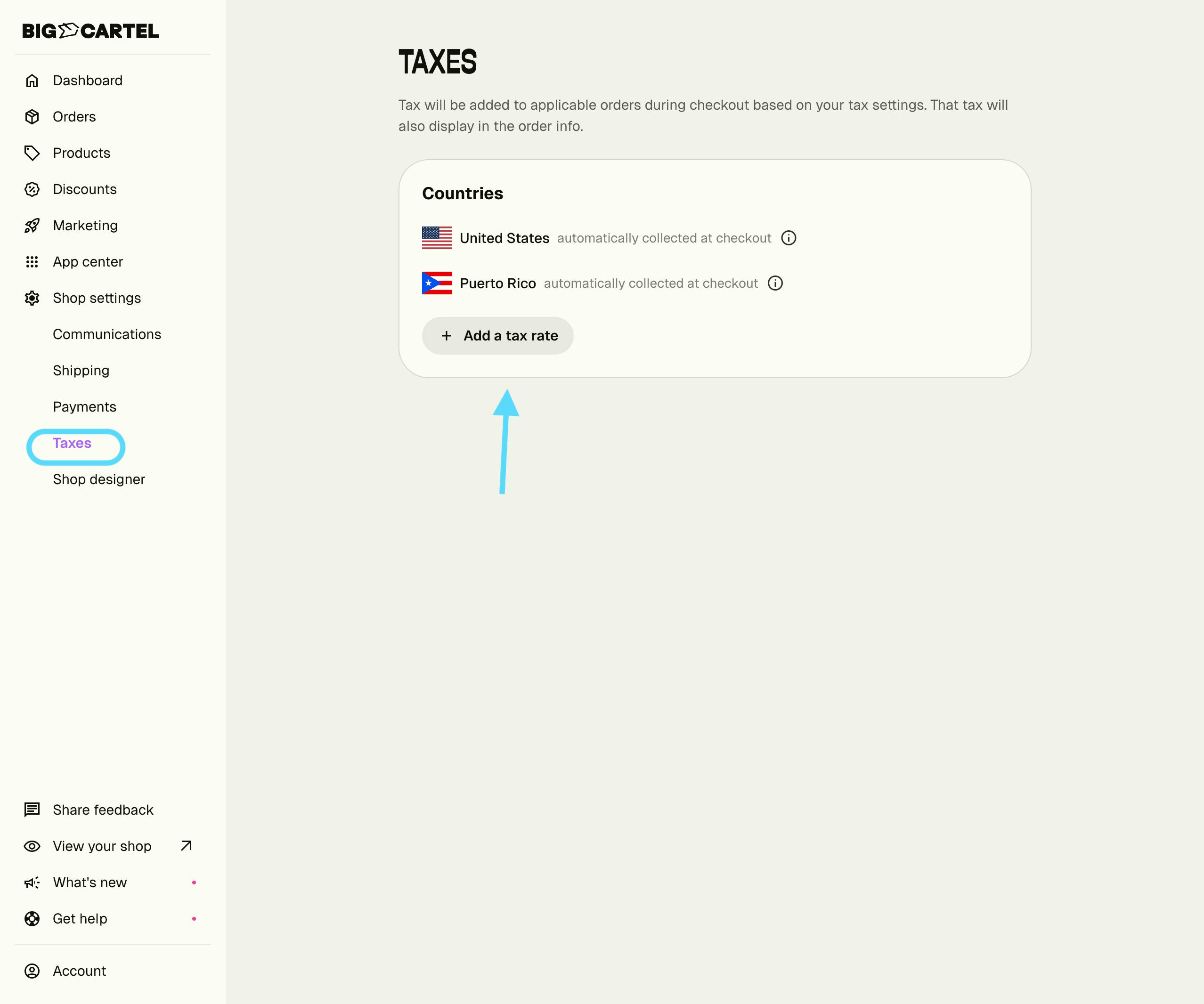 Sales tax collection on orders shipping within the U.S. & Puerto Rico is only supported with Automatic taxes. Learn more about Automatic taxes.