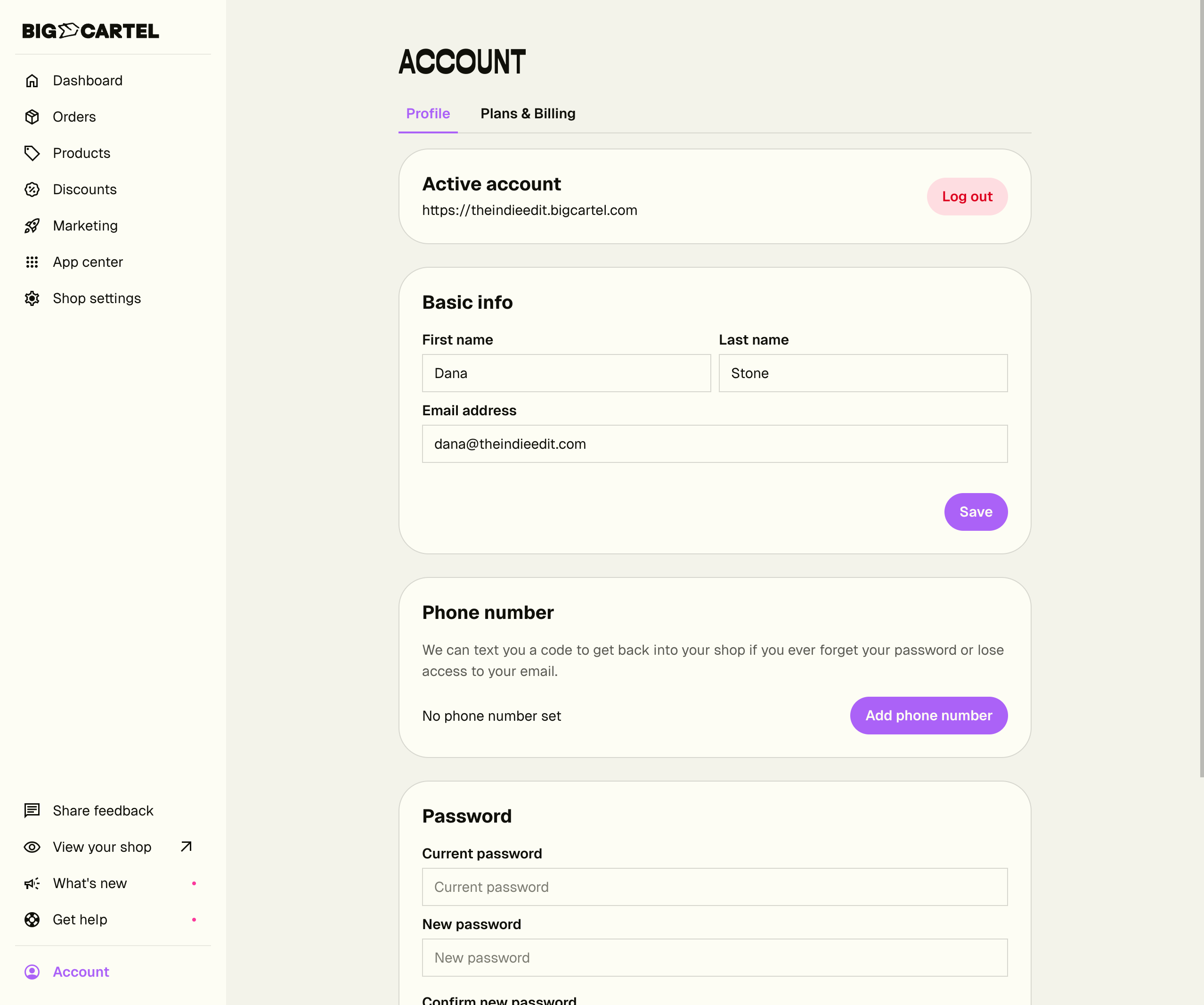 Adding a phone number gives you an extra way to get back into your shop if you ever forget your password or lose access to your email.