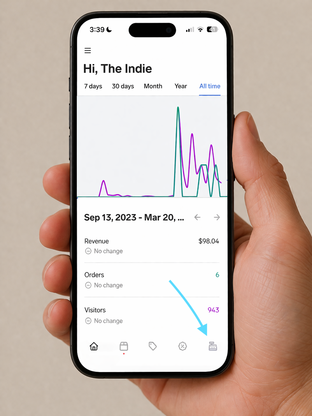 When a customer is ready to purchase something, you’ll use the Cash Register inside the Big Cartel app to build the order and complete the payment.