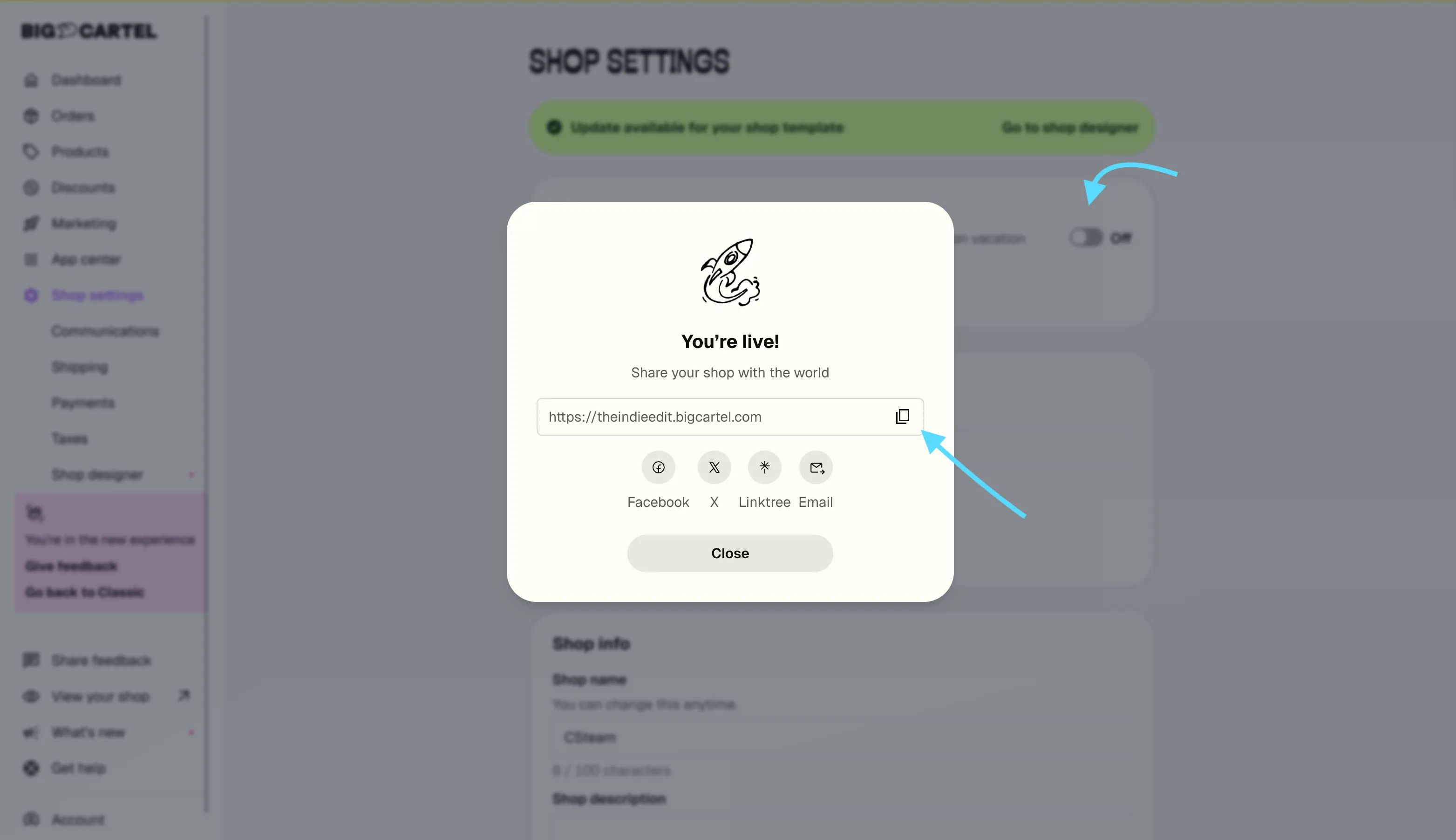 Once this is disabled, your shop will be publicly accessible, and customers can begin visiting and placing orders.