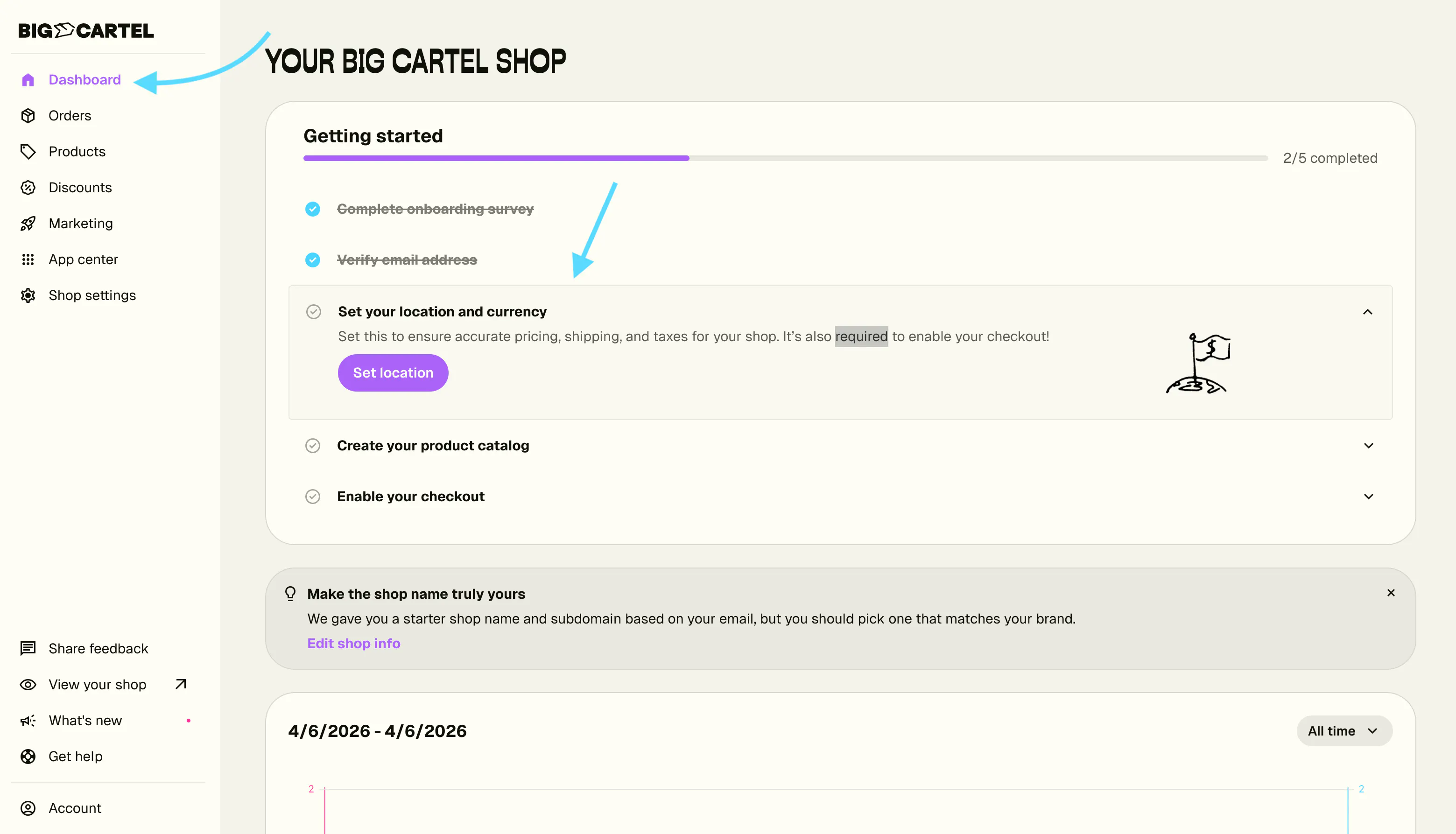Your shop name and subdomain determine your shop’s URL, so it's important to make sure they reflect your brand before launching.