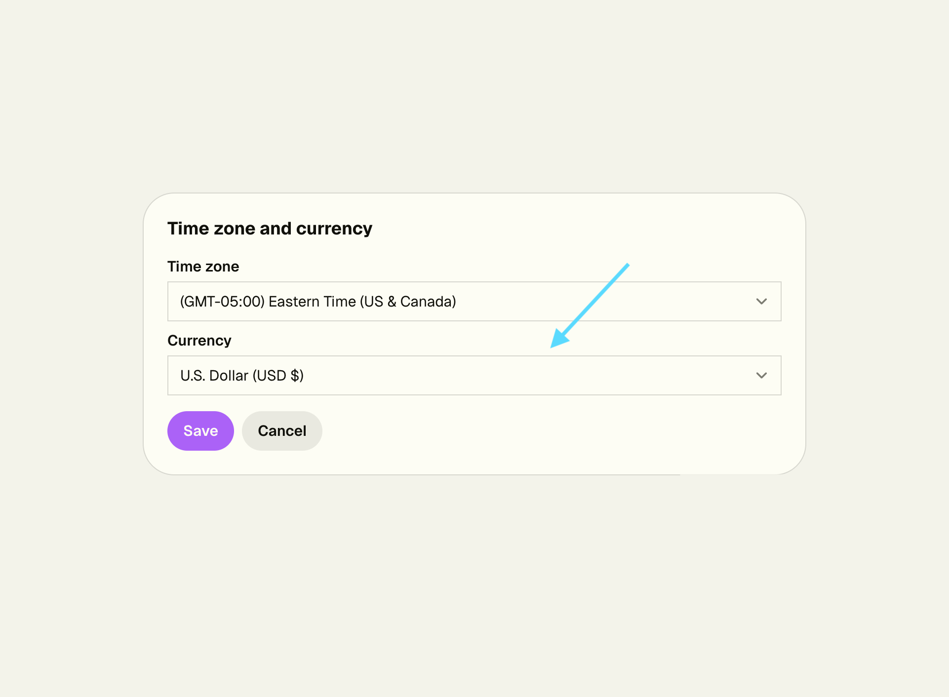 - Select your currency from the dropdown menu and click Save.